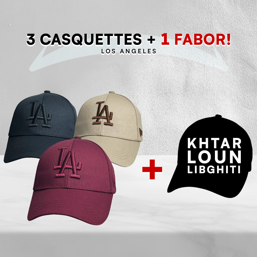 Optez pour notre pack de 3 casquettes + 1 Offerte en coton doux et respirant, offrant confort et fraîcheur toute la journée.